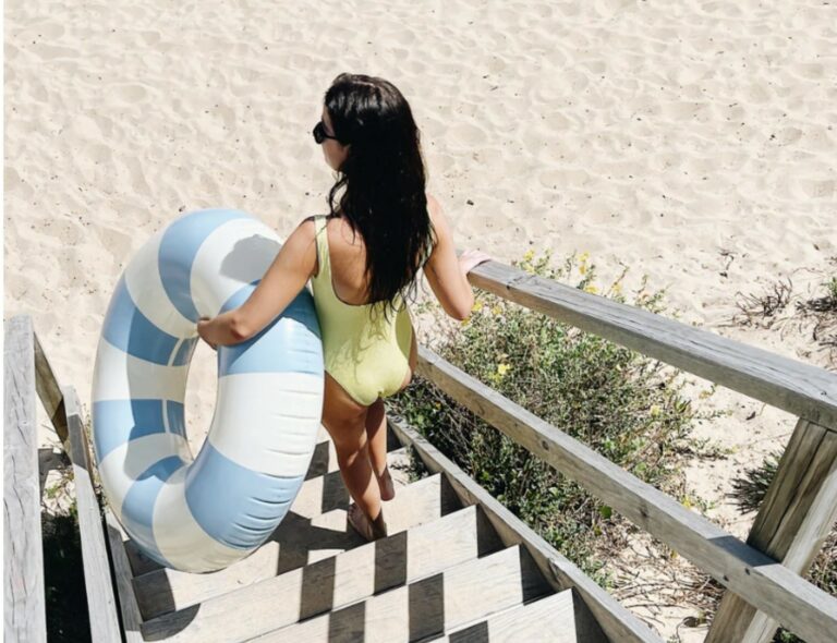 Este celeste combina con el agua y el cielo, además de sus rayas blanco crema que lo hacen ver muy “aesthetic”, y crea un ambiente de calma y relajación.